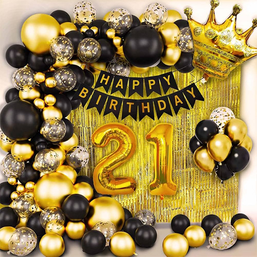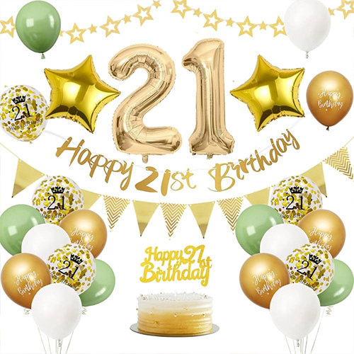 21 औं बेलुन सेट: यो 21 औं बेलुन सेट लेटेक्स बेलुन, पन्नी बेलुन, जन्मदिन झण्डा र अन्य सामानहरू मिलेर बनेको छ। यो भेला गर्न सजिलो छ र तपाईंको 21 औं जन्मदिनको पार्टीलाई थप औपचारिक बनाउन सक्छ। यस्तो उच्च गुणस्तर र आश्चर्यजनक सेटिङले तपाइँलाई तपाइँको 21 औं जन्मदिनको रात उज्यालो बनाउन र तपाइँको छोरी, तपाइँ र सम्पूर्ण परिवारले कहिल्यै बिर्सने छैन भन्ने अनमोल क्षण बनाउन मद्दत गर्नेछ।