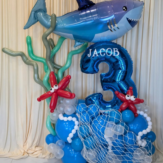 2 फोल्ल बेलुन:शार्क फोल बेलुनको साथ बेलुन माल्याण्डको साथ, यस प्याकेजले शार्क, स्टारफिश, जेलीफिश र समुद्री मार्गहरू सहित फोल बेलुनको साथ सुसज्जित छ। थप रूपमा, हामी तपाईंको लागि चलन एजल बेलुनहरू डिजाइन गर्न सक्दछौं तपाईंको ढाँचा बेलुनहरू, शार्क स्याल बेलुनको साथ एक अद्वितीय बेलुन माल्याण्ड सिर्जना गर्न।