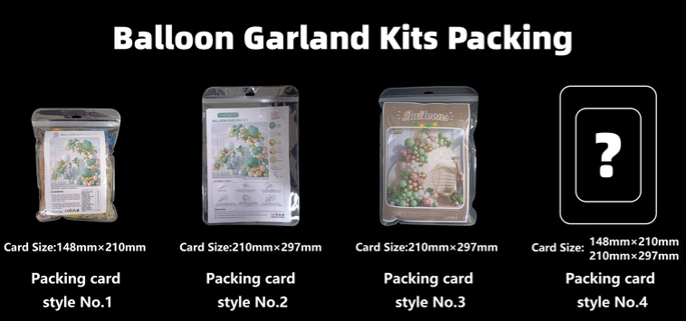 1. प्याकिङ: हामी तपाईंको लागि बो-थीम्ड बेलुन आर्क प्याकिङ झोला वा झोलामा प्रिन्टिङ अनुकूलन गर्न सक्छौं, तर त्यहाँ moq मात्रा आवश्यकताहरू छन्।