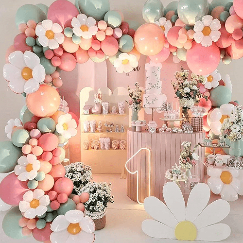 जन्मदिनको पार्टी: डेजी बेलुन माला जन्मदिन पार्टीहरूको पृष्ठभूमि सजावटको रूपमा प्रयोग गर्न सकिन्छ, बच्चाहरू वा महिलाहरूको जन्मदिन पार्टीहरूमा व्यवस्थित गर्नका लागि उपयुक्त, रमाईलो वातावरण सिर्जना गर्न।
