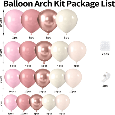 धुलो गुलाबी बेलुन सानो किट:यो सानो किट 50 देखि 80pcs गुलाबी बेलुनहरू मिलेर बनेको छ। सेटको लेयरिङ प्रभाव बढाउनको लागि, तपाइँ सेतो, खुबानी र पारदर्शी बेलुनहरू पनि थप्न सक्नुहुन्छ। तिनीहरूलाई भर्नको लागि हेलियम प्रयोग गर्नुहोस् र त्यसपछि तपाईंले बाँध्न रिबन प्रयोग गर्न सक्नुहुन्छ र त्यसपछि तिनीहरूलाई हावामा उड्न दिनुहोस्।