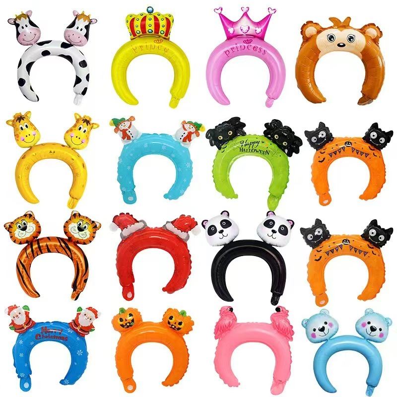 कार्टुन शैली पन्नी बेलुन हेडब्यान्डहरू बच्चाहरूको मनपर्ने शैलीहरू हुन्। केक र रिबनको साथ, तिनीहरूले चाँडै पार्टीमा चंचल आनन्द ल्याउँछन्।