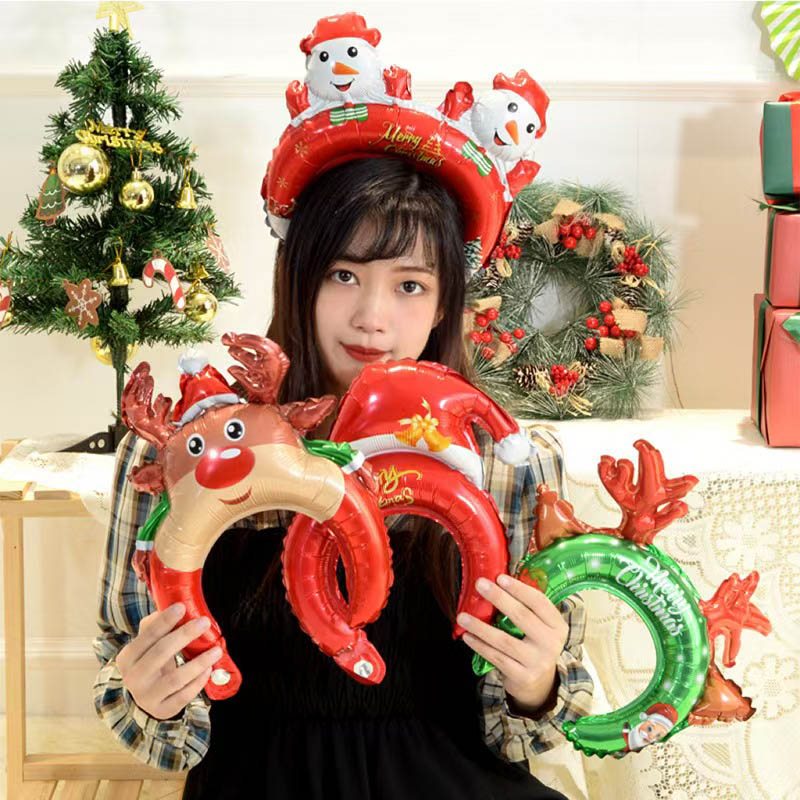 क्रिसमस पन्नीले ढाकिएको हेडब्यान्डहरूमा क्रिसमस रूख, सान्ता र रेनडियरको साथ उत्सवको पुरानो डिजाइनहरू छन्। तिनीहरूको रातो र हरियो रंगको ढाँचाहरूले मौसमी आनन्दलाई प्रभाव पार्छ। हावाले भरिएको बेला, तिनीहरू मिनी क्रिसमस सजावटहरू जस्तै देखिन्छन् र क्रिसमस पार्टीहरूमा वा किनमेल मलहरूमा पनि छुट्टीको खुशी फैलाउनको लागि उत्कृष्ट छन्।