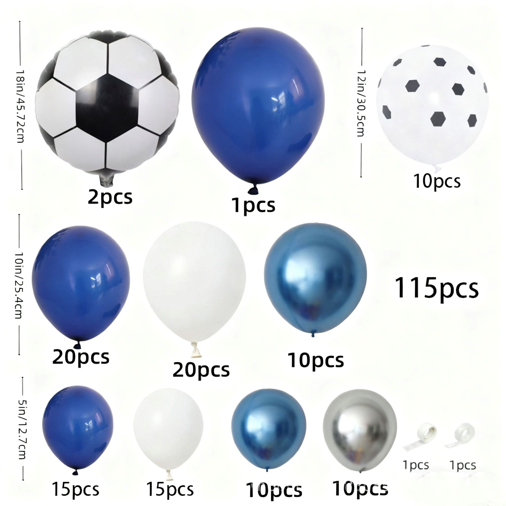 कुल 115pcs फुटबल थीम बेलुन आर्क किटहरू।
