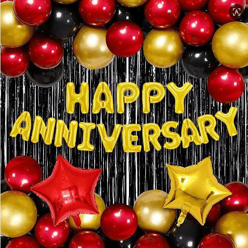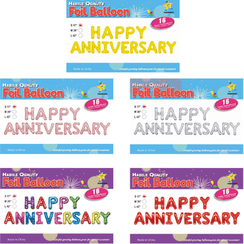 ह्याप्पी एनिवर्सरी पन्नी बेलुनको लागि सजावटको लागि 16 इन्च, मुख्य पृष्ठभूमिको लागि 32 इन्च र ठूला पार्टीहरूको लागि 40 इन्च।