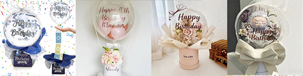 एक वा बढी गुलाब बोबो बेलुन भित्र राख्न सकिन्छ। रोमान्टिक भावना देखाउनको लागि यो क्लासिक तरीका हो। स्पष्ट बेलुन एक आवरण जस्तै छ। यसले फूलहरू अधिक उज्ज्वल र अधिक प्यारा देखिन्छ। रातो गुलाबको मतलब जोश हो। गुलाबी गुलाबको अर्थ नरम र कोमल हो। उक्त दृश्यले नेतृत्वको बत्तीसँग राम्रो छ। यो उनको जन्मदिन मा एक केटी को लागी एक राम्रो उपहार हो।