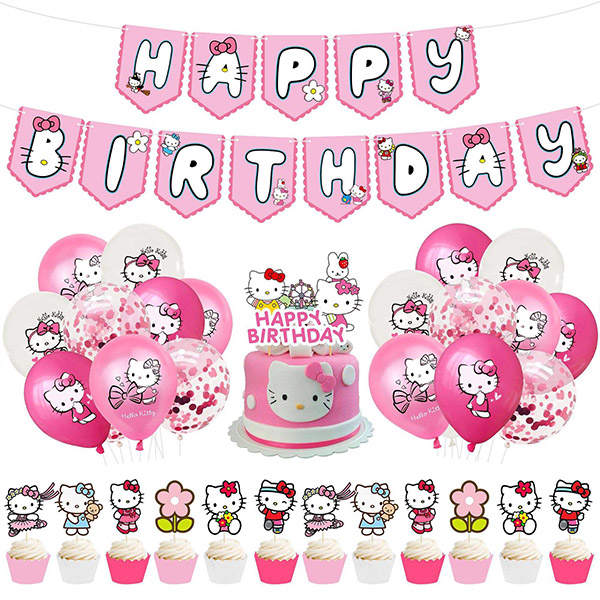 नमस्ते किट्टी बेलुन थीममा आधारित पार्टी आपूर्तिहरूमा पूर्ण सजावट सेट समावेश छ, छुट्टी पार्टीहरूको लागि दर्जी-निर्मित, तपाईंलाई द्रुत रूपमा न्यानो, हर्षित र उत्सव वातावरण सिर्जना गर्न मद्दत गर्दछ।