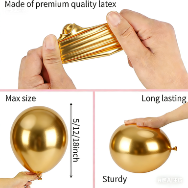 हामीले एउटा बेलुन माला किटमा प्वाल पार्ने लेटेक्स बेलुनहरू 100% प्राकृतिक लेटेक्सबाट बनेको हुन्छ जुन दक्षिणपूर्व एशियाबाट आयात गरिएको हो। जसको साइज ५ इन्च, १० इन्च १२ इन्च र १८ इन्च छ, जसलाई विभिन्न साइजमा मिलाएर आकर्षक लेयरिङ इफेक्ट सिर्जना गर्न सकिन्छ ।