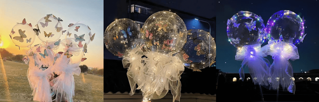 बेलुन किटहरू (विभिन्न आकारका साधारण बेलुनहरू सहित, बेलुन चेन र अभानहरू सहित) चाडपर्व र उत्सवहरू, तर एक किट बाक्लो र भारी छ। खाली-आउट पुतली स्टिकरहरूले बाच मोटिभन र स्थानीय फोक्सोको माध्यमबाट लेआउट स्तरलाई समृद्ध गर्न सक्दछ, ठूलो मात्रामा सजावट अधिक लचिलो बनाउँदछ।