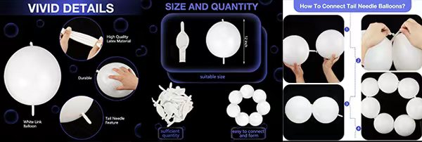 हाम्रो द्रुत लिंक बेलुनहरू उनीहरूको अनुपम अन्त-टु-टाउन-टु-टाउन्ट डिजाइनको साथ बाहिर उभिन्छ, उपकरणहरूको लागि आवश्यकता हटाउँदै। परम्परागत बेलुनको तुलनामा, उन्नत लिंक बेलुन जडान प्रक्रिया सरल र छिटो हो, तपाईंलाई तपाईंको पार्टी वा घटना स्थललाई अधिक कुशलतापूर्वक सजाउन मद्दत गर्दछ।