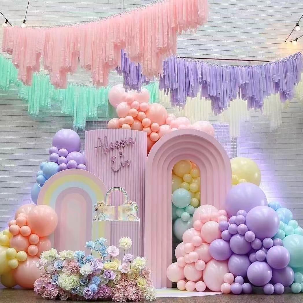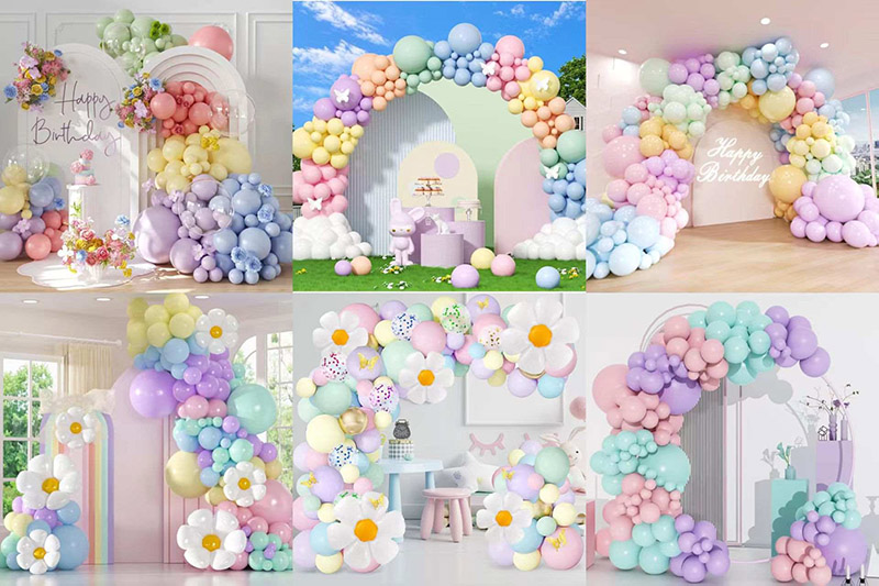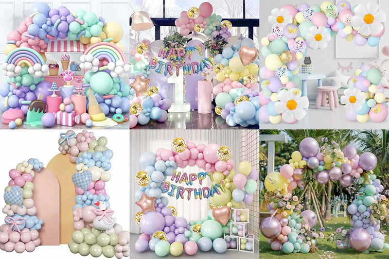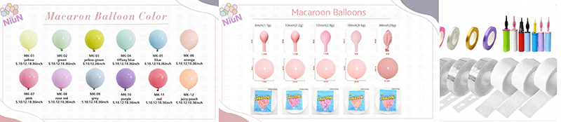 यी संयोजनहरूको साथ, macaron बेलुनहरू मोलल्याण्ड आर्क कोमल र रोमान्टिक शैली देखाउन सक्छन्। तिनीहरूले ताजा र प्यारा, स्टाइलिश र उत्कृष्ट, वा भव्य र भव्य देखिन्छ विभिन्न अवसरहरूको लागि।