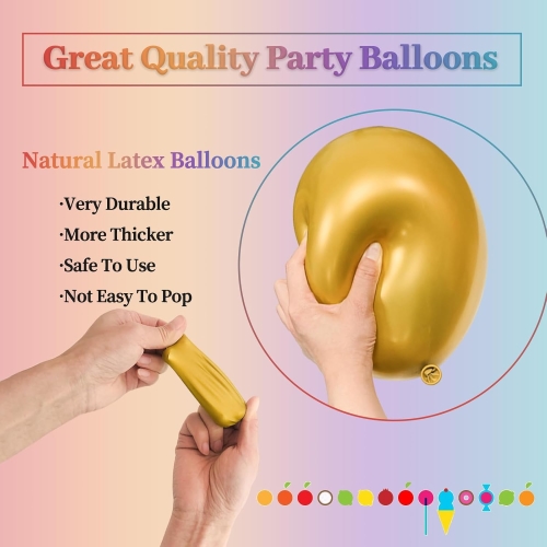 साइज: मेटालिक लेटेक्स बेलुनहरूको साइज 5 इन्च, 10 इन्च, 12 इन्च, 18 इन्च र 36 इन्च हुन्छ।