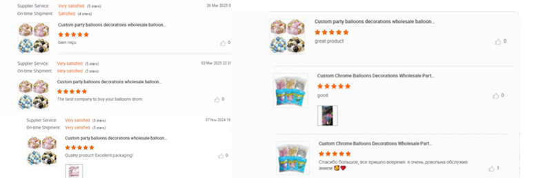 12 इन्च धातु रंग बेलुनहरू साना सेटहरू दुई विकल्पहरूमा आउँछन्। तपाईं 12-टुक्रा कम्प्याक्ट प्याक वा 30-टुक्रा ठूलो प्याक छान्न सक्नुहुन्छ। 12-टुक्रा प्याकले साना पार्टीहरूको लागि राम्रो काम गर्दछ। यो टेबल सजावट र उपहार जोडीहरू पनि फिट हुन्छ। यसले राम्रो मूल्य र व्यावहारिक प्रयोग दुवै प्रदान गर्दछ। 30-टुक्रा प्याकले ठूला आवश्यकताहरू अनुरूप गर्दछ। यो पर्खाल सजावट र बेलुन आर्क भवन को लागी आदर्श छ। तपाईं आफ्नो वास्तविक खरिद परिदृश्यको आधारमा सही छनौट गर्न सक्नुहुन्छ। हामीसँग 10 वर्ष भन्दा बढी बिक्री अनुभव छ। 12-टुक्रा प्याकमा अधिक लागू परिदृश्यहरू छन्। यो ग्राहकहरु माझ बढी लोकप्रिय छ।