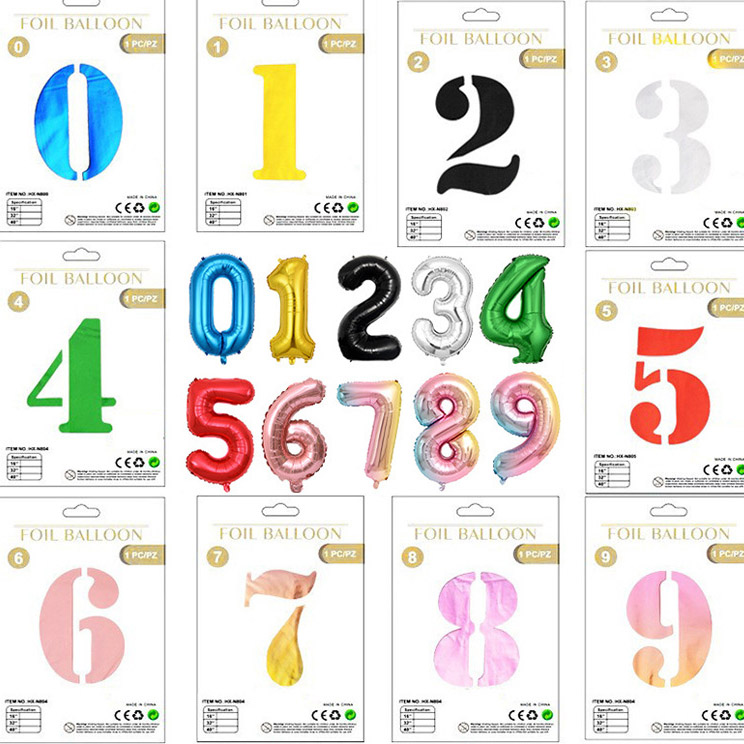 नम्बर पन्ली बेलुनहरू: 1 "", 322 ", र" 0 "को आकारमा उपलब्ध।