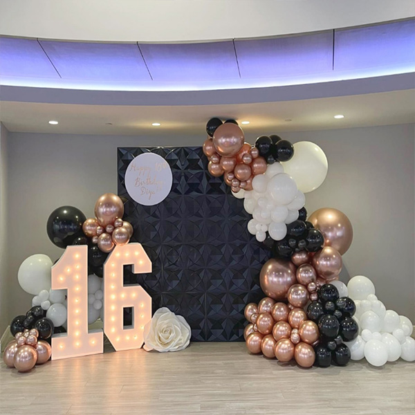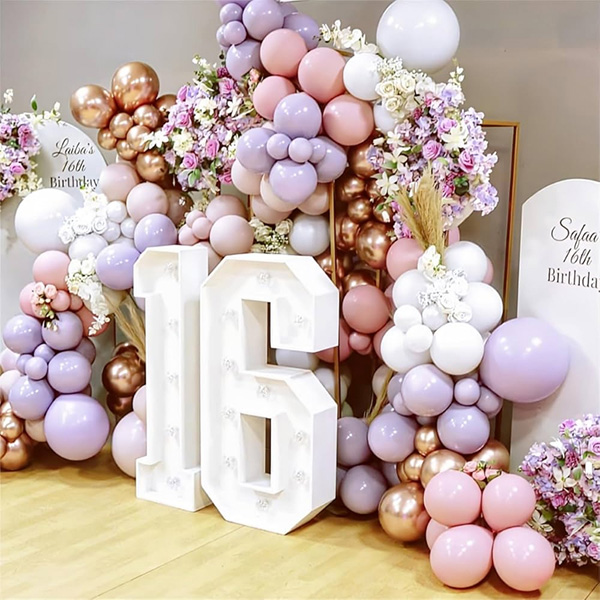 16 नेतृत्व बत्ती संग बेलुन माला:हाम्रो कारखानाले 16 वर्ष पुरानो एलईडी लाइटको साथ बेलुन माला पनि सुरु गर्यो। एलईडी नम्बर लाइटहरू उज्ज्वल र दिगो प्रकाश प्रभावहरू प्रदान गर्न वातावरणमैत्री सामग्री ABS र LED बाट बनेका छन्। अन्धकारमा चम्कन सक्ने संख्या र अक्षरहरू भएका एलईडी बत्तीहरू। नरम प्रकाशले आराम र आरामदायक वातावरण सिर्जना गर्दछ र कुनै पनि कोठामा एक अद्वितीय आकर्षण थप्छ। तिनीहरू स्वतन्त्र रूपमा प्रदर्शन गर्न सकिन्छ वा पर्खालमा झुण्ड्याउन सकिन्छ, म्यानटेलमा वा घटना वा उत्सवहरूको समयमा प्रयोगको लागि स्वागत क्षेत्रमा राखिएको छ। इमर्सिभ पार्टी वातावरण सिर्जना गर्नका लागि उपयुक्त बेलुन माला आर्चहरू सहितको LED नम्बर बत्तीहरू, तपाईंको 16 औं जन्मदिनमा समारोहको अविस्मरणीय भावना थप्दै, अद्वितीय र अविस्मरणीय तस्बिरहरू खिच्नको लागि एक आवश्यक प्रोप हो।