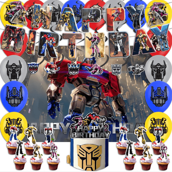 क्लासिक संयोजन: रंगीन लेटेक्स बेलुन थिम झण्डासहित ट्रान्सफर्मर फोइल बेलुन, आधारको रूपमा लेटेक्स बेलुन, भिजुअल कोरको रूपमा पन्नी बेलुन, थिम सजावटको रूपमा झण्डा, जन्मदिन पार्टीहरूका लागि उपयुक्त, आधारभूत लेआउटको उत्सव उत्सवहरू।