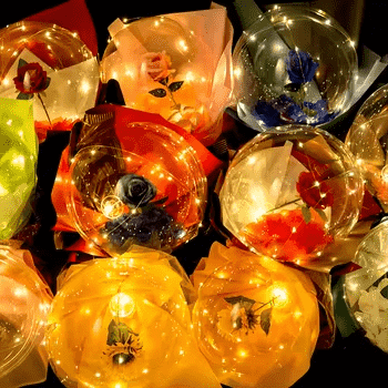 गुलाब बोबो बेलुन एक रचनात्मक उत्पादन हो जसले गुलाबलाई बोबो बेलुनसँग जोड्दछ। गुलाफहरू उपचार गरिन्छ, जस्तै फ्लफी र पूर्ण घुट्ने, पारदर्शी बोबो बेलुनमा हाल्नुहोस्, र त्यसपछि बोबो बेलुन फुलाउनुहोस्। त्यस पछि, फूलको पोल र बलको मुख टाँस्ने टेपको साथ निश्चित गरिनेछ, र एक लाइट लाइनको साथ बल होल्डर स्थापना गरिनेछ। प्रकाश रेखामा पनि विभिन्न प्रकारका प्रकाश मोडहरू छन्। साथै, बललाई अझ सुन्दर र नाजुक बनाउन लामो बेलुन, फेयरी यार्न, रिबन आदिले सजाइनेछ। मुख्यतया भ्यालेन्टाइन डे, जन्मदिन, विवाह र अन्य रोमान्टिक अवसरहरूको सजावटको लागि प्रयोग गरिन्छ, उपहारको रूपमा पनि दिन सकिन्छ।