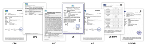 हाम्रा उत्पादनहरूको पूर्ण दायराले CPC, CE, EN71 र अन्य आधिकारिक प्रमाणीकरण पारित गरेको छ, युरोपेली र अमेरिकी र अन्य लक्षित बजार सुरक्षा नियमहरूको कडा अनुपालनमा। यी योग्यताहरूले तपाईंका सामानहरूलाई भन्सार सहज रूपमा खाली गर्न र विदेशी बजारहरूमा अनुपालन जोखिमहरूलाई पूर्ण रूपमा बेवास्ता गर्न मद्दत गर्न सक्छ।