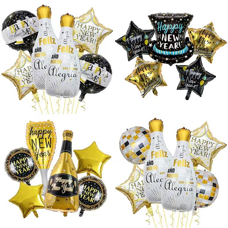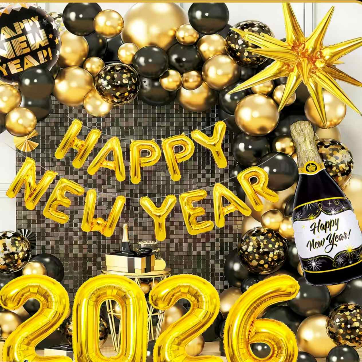 नयाँ वर्ष-थीम सेटको बारेमा सोच्नुहोस्। यसमा पन्नी बेलुनहरू छन् जुन शैम्पेन बोतलहरू जस्तै देखिन्छ। यसमा "2026" नम्बरका बेलुनहरू, तारा सजावटी बेलुनहरू र थप कुराहरू पनि समावेश छन्। मुख्य रंगहरू कालो-सुन वा सुन-सेतो हुन्। यो नयाँ वर्षको उत्सव खुशीले भरिएको छ। यसले सजिलैसँग विलासी र औपचारिक नयाँ वर्ष पार्टी दृश्य बनाउन सक्छ।