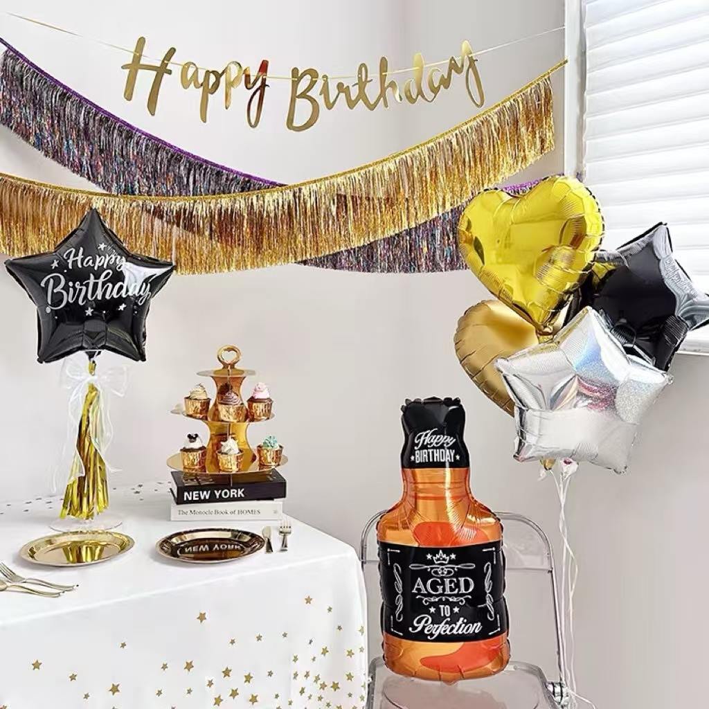 त्यहाँ एक जन्मदिन-थीम सेट पनि छ। गुलाबी र प्यारा वाइन बोतल बेलुनहरू हृदय आकारको पन्नी बेलुनहरू र "ह्याप्पी बर्थडे" लेटर बेलुनहरूसँग डिजाइन गरिएका छन् र गुलाब सुनको रंग धेरै रोमान्टिक र न्यानो छ। यसले जन्मदिनको पार्टीमा मीठो भावना थप्छ।